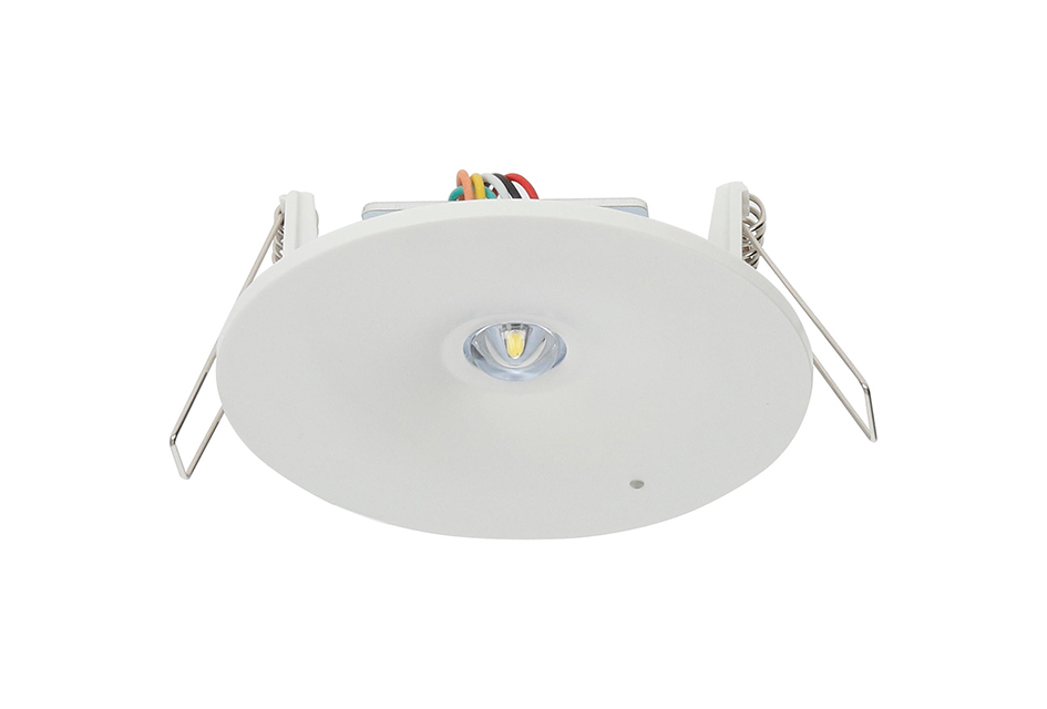 Sicherheitsleuchte für die Rettungswegbeleuchtung mit Optiken für die Ausleuchtung von Fluchtwegen oder Flächen. Das Gehäuse eignet sich zur Deckeneinbaumontage und ist aus Kunststoff gefertigt. Die selbstversorgte Notleuchte besitzt ein LED-Leuchtmittel. Die Betriebsbemessungsdauer ist über einen Schalter auswählbar (1h/2h/3h/8h). Der Lichtstrom variert gemäß der Auswahl der Betriebsbemessungsdauer (261 lm @1 h, 233 lm @2 h, 185 lm @3 h, 70 lm @8h). Die Notleuchte ist mit einem Überwachungsmodul für automatische Funktions- und Betriebsdauertests ausgestattet um einen Betrieb nach EN 50172 und IEC 62034 zu gewährleisten. Die Statusanzeige (Betriebsbereit, Ladebetrieb, Batteriebetrieb, Akkufehler, LED/Elektronikfehler) erfolgt über eine zweifarbige Status LED. Der integrierte Akkumulator enthält eine elektronische Ladeüberwachung und Tiefentladeschutz.