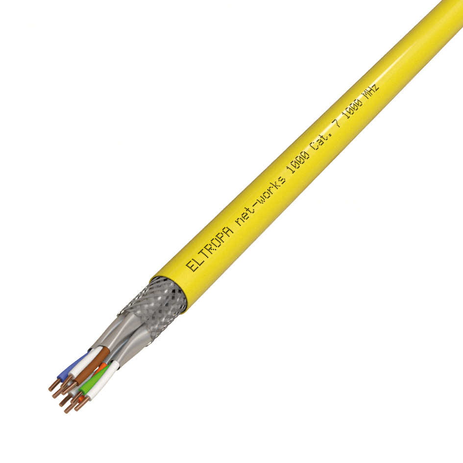 | LAN-Kabel, Cat7, Dca, Halogenfrei nach EN IEC 60754-1, 4x2xAWG23, R100, Kl.1 = eindrähtig, Polyolefine, Farbe, Folie, Geflecht | LAN-Kabel, Cat7, Dca, Halogenfrei nach EN IEC 60754-1, 4x2xAWG23, Kl.1 = eindrähtig, Polyolefine, Farbe, Folie, Geflecht | LAN-Kabel, Cat7, Dca, Halogenfrei nach EN IEC 60754-1, 4x2xAWG23, TR500, Kl.1 = eindrähtig, Polyolefine, Farbe, Folie, Geflecht | LAN-Kabel, Cat7, Dca, Halogenfrei nach EN IEC 60754-1, 4x2xAWG23, TR1T, Kl.1 = eindrähtig, Polyolefine, Farbe, Folie, Geflecht |