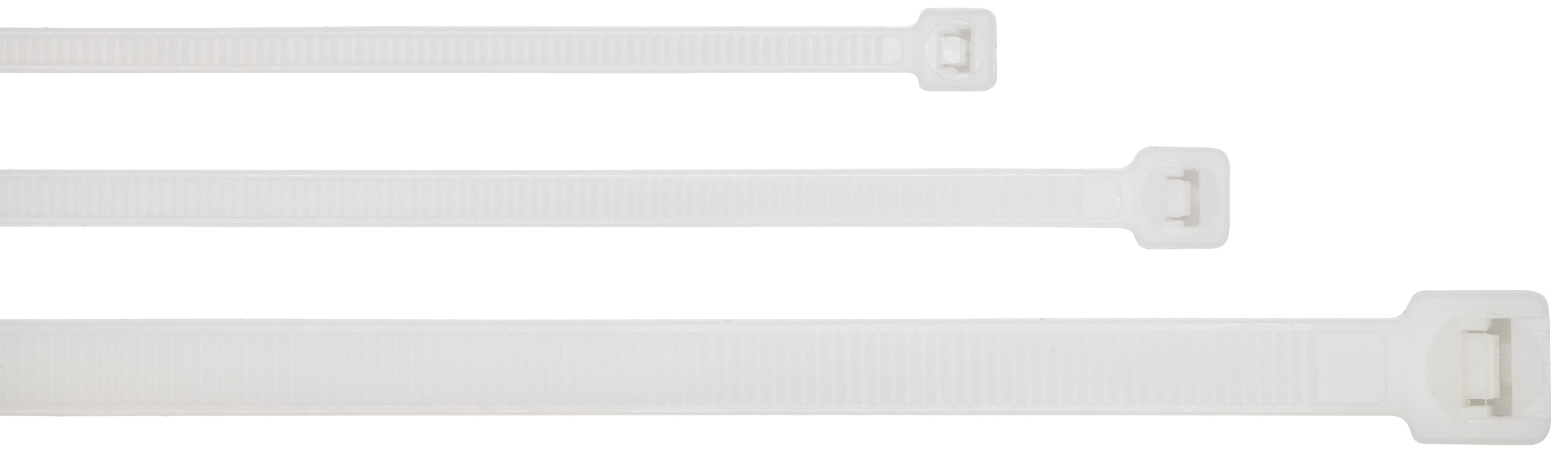 Kabelbinder aus Polyamid 6.6. Selbstverlöschend gemäß UL 94 V-2, halogenfrei. Anwendungsbereich: -40°C bis +85°C. Beständig gegen: Alkalien, Öle, Ölprodukte, Schmierfette, Chloratlösungsmittel. Begrenzte Säurebeständigkeit. Keine Beständigkeit gegen Phenole.
